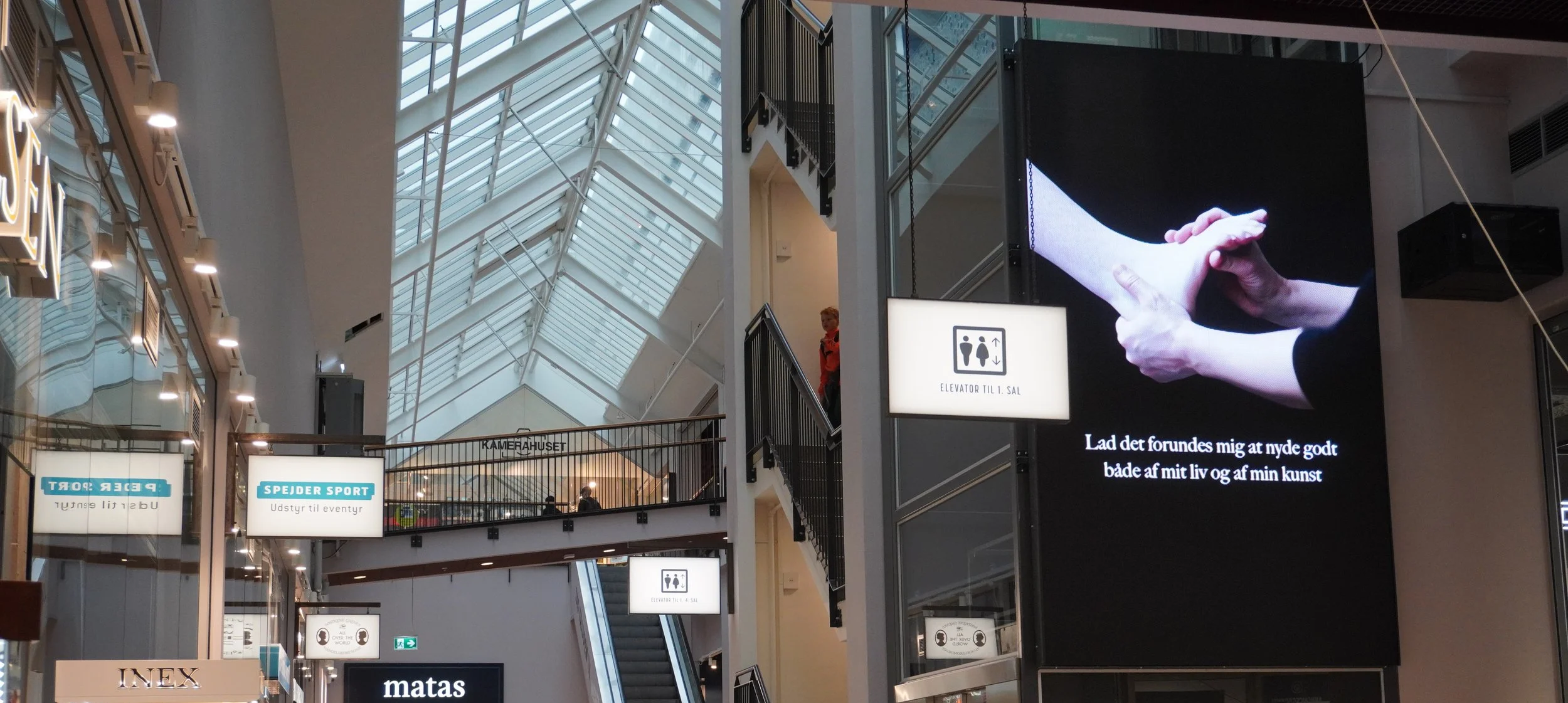 Placering: Infoskærme i hele centret, samt monteret skærm i hvileområde i stueplan, mellem Espresso House og Rituals
