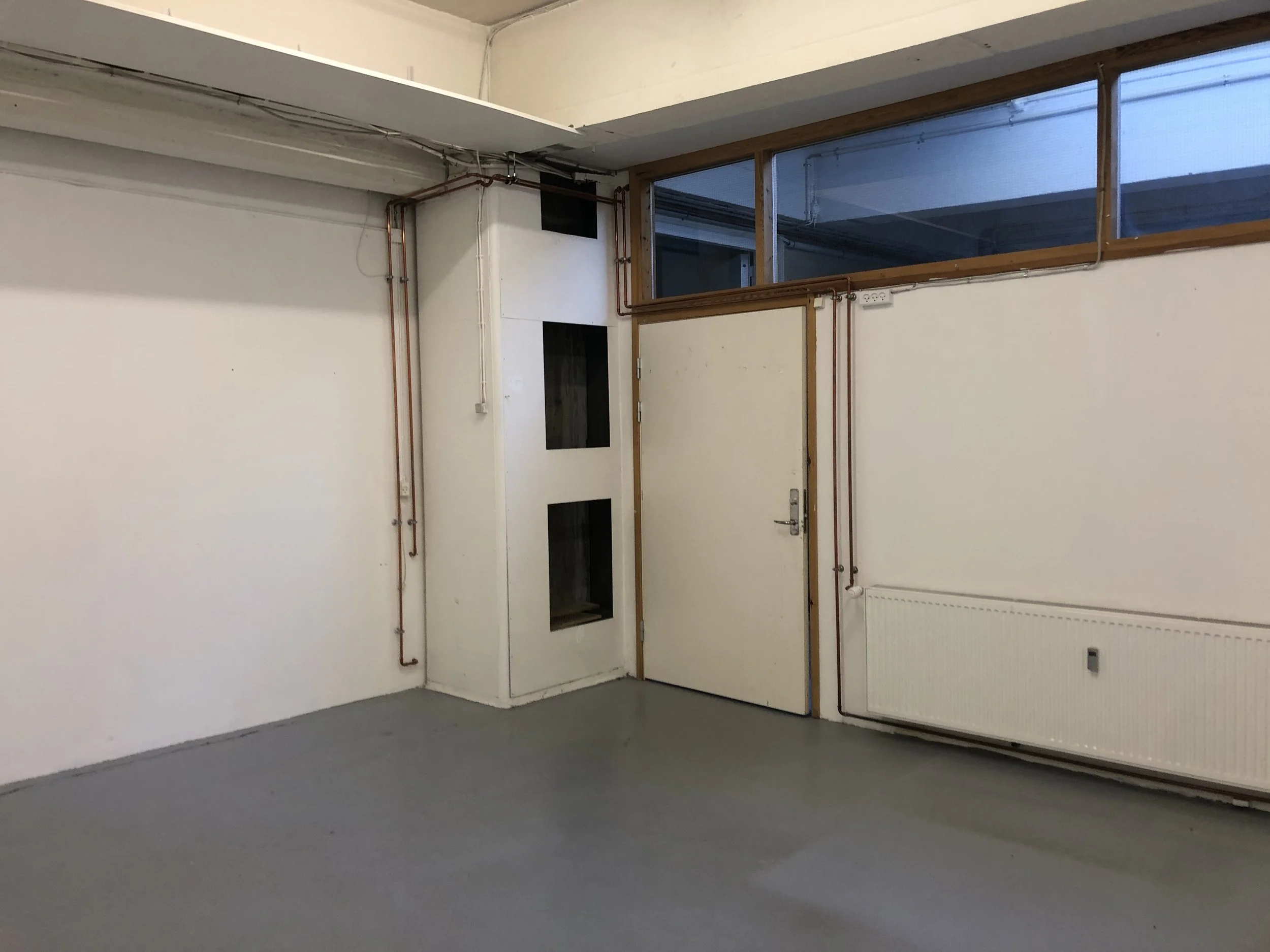Atelieret er 35 m2 og beliggende i stueetagen. Atelieret har udelukkende indirekte ovenlys og egner sig bedst til praksiser, der ikke kræver kraftig udluftning.